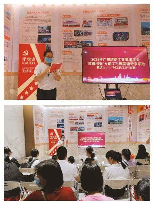 主題二“弘揚(yáng)工匠精神”:廣州輕工集團(tuán)十大最美工匠之一、利工民陳慧技師創(chuàng)新工作室的陳慧作為“玫瑰書香”女職工主題閱讀活動的領(lǐng)讀人,為大家領(lǐng)讀了《把一切獻(xiàn)給黨》選段,同時分享了自己對利工民產(chǎn)品20年的改良創(chuàng)新歷程。利工民黨委副書記、工會主席陳惠瓊揮毫?xí)鴮憽敖韼焦矈^進(jìn),永遠(yuǎn)跟黨走”。