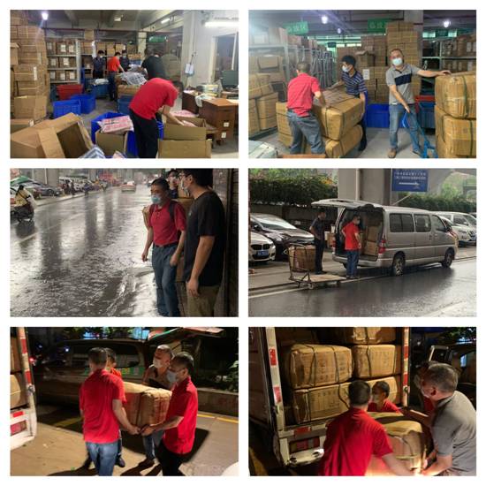 6月2日下午4時50分,利工民收到荔灣區(qū)白鶴洞街道緊急采購1000床毛巾被以協(xié)助解決抗疫工作人員休息難題的信息后,馬上組織十幾名員工進行備貨,不到一小時就將貨品集結(jié)并打包完畢。5時30分,朱佛令經(jīng)理帶領(lǐng)五名員工冒著傾盆大雨,將貨物火速發(fā)往指定地點。
